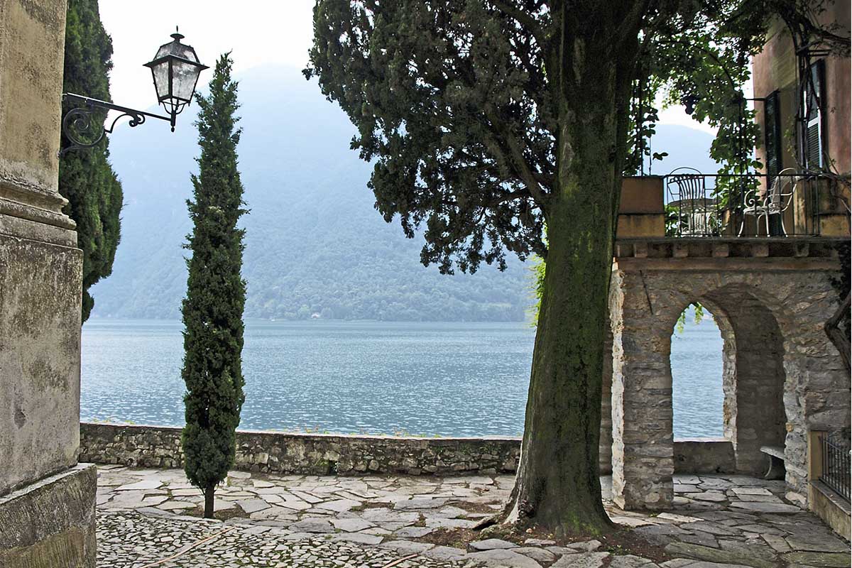 La vitrine éclairée sous les panneaux présente les œuvres d'Antonio Fogazzaro traduites en première édition dans les différentes langues du monde: français, allemand, anglais, danois, serbe, croate, turc, néerlandais, espagnol, suédois et finnois.