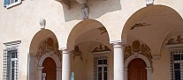 L’atrio di villa Carlotti a Caprino Veronese è composto da un porticato a tre arcate, attraverso il quale si accede alla casa padronale.