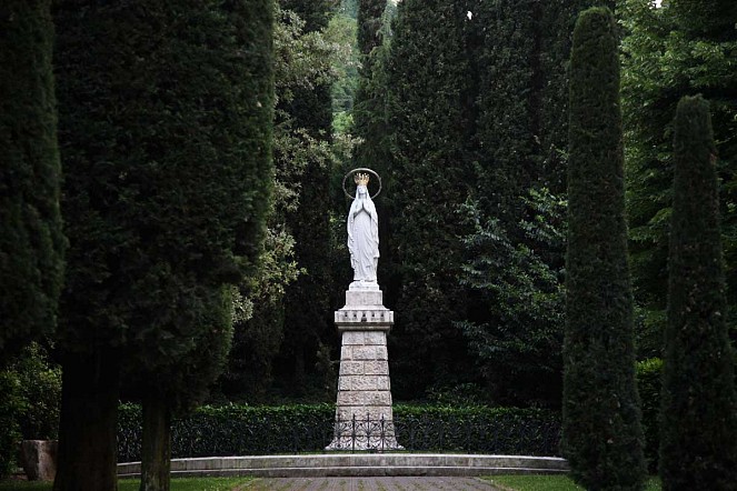 Condotti dall’ampio viale di ingresso fiancheggiato da alti cipressi o dopo aver percorso il cammino della splendida Via Crucis si giunge al centro del Santuario. Siamo all’ingresso della Grotta di Lourdes del Beato Claudio.